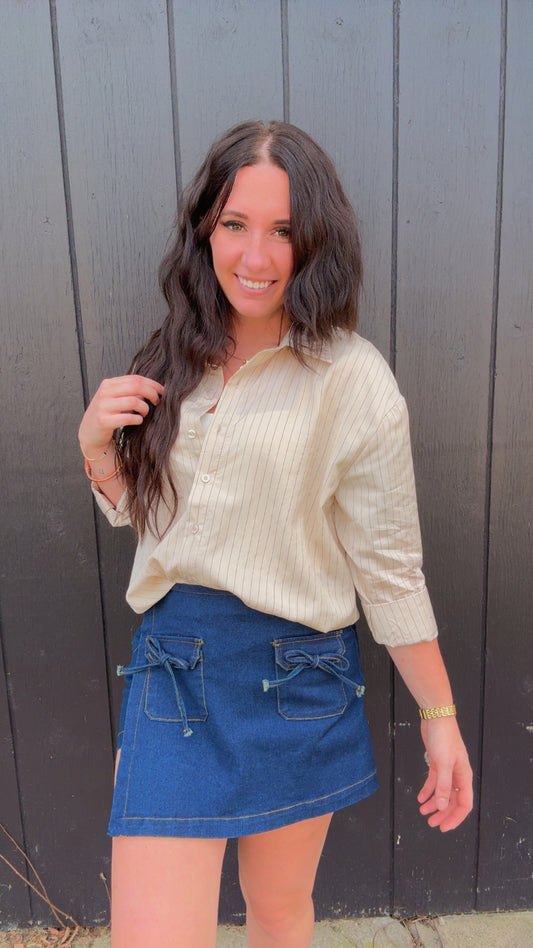 WRAP FRONT TIE POCKET DETAIL DENIM MINI SKORT