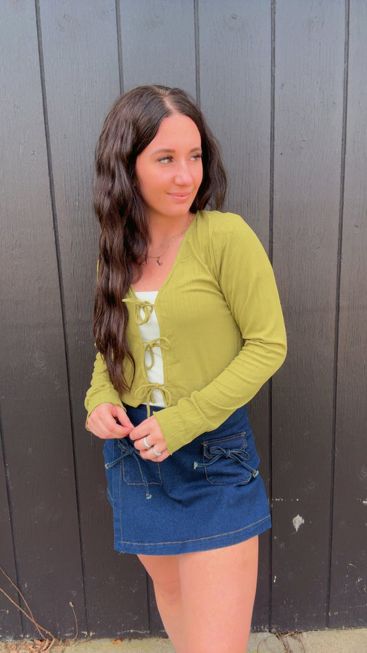 WRAP FRONT TIE POCKET DETAIL DENIM MINI SKORT