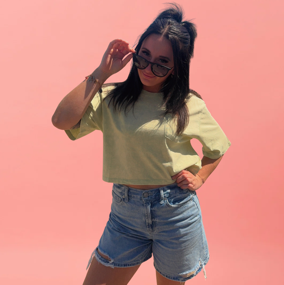 DROP SHOULDER HALF SLEEVE CROP TOP WITH POCKET